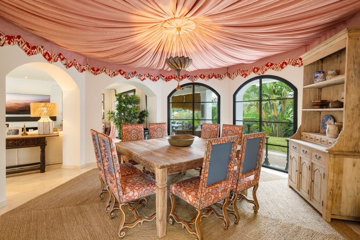 The exterior of the villa is designed to maximize enjoyment of the Mediterranean climate. A private garden stands out, ideal for moments of outdoor relaxation. The terrace is a perfect space for enjoying al fresco dining or simply contemplating the natural surroundings of the property. Additionally, the villa features a private pool, offering a personal oasis for cooling off during warm summer days. The exterior design perfectly complements the architectural style of the villa, creating a visual harmony that integrates with the landscape of Benahavís.