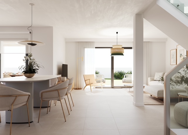 The townhouses feature outdoor spaces designed to enjoy the Mediterranean climate. Each property includes a private garden, perfect for moments of outdoor relaxation. Additionally, the terraces offer an ideal space to enjoy the sea views and natural surroundings. For those seeking an extra touch of luxury, each townhouse has a solarium, providing an exclusive space for leisure and relaxation. The inclusion of a private pool in each unit allows for a refreshing swim in the privacy of your home.