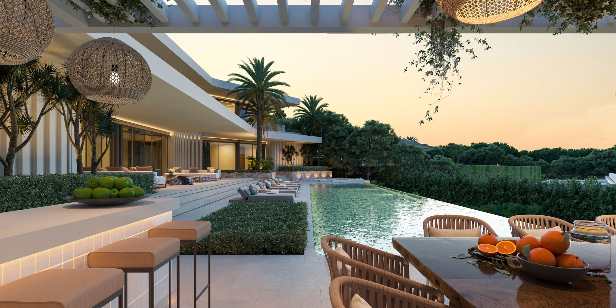The project includes a 1,440 m² residence, which extends outwards through 510 m² of perfectly oriented terraces. The property will feature meticulous landscaping, spacious outdoor leisure areas, chill-out zones, an outdoor kitchen, gardens integrated with the natural environment and a spectacular private swimming pool. Everything has been designed to maximise light, views and comfort, creating a perfect harmony between architecture and nature.