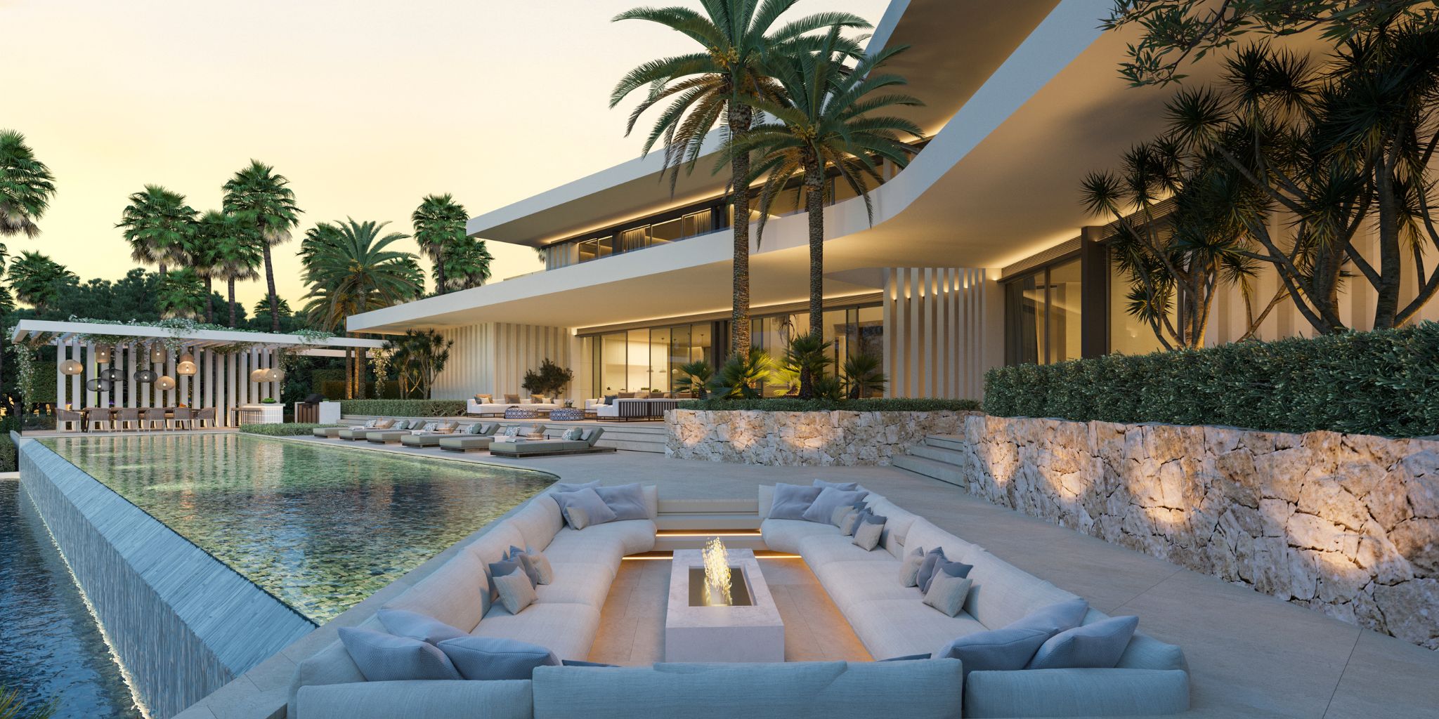The planned villa will have seven en-suite bedrooms, eight full bathrooms and three guest toilets, as well as spacious living rooms, a dining room, a designer kitchen and indoor leisure areas such as a gym, spa, cinema room and multifunctional spaces. Each room has been designed with generous proportions, large windows and an open layout that allows natural light to flood in. The optional integration of interiors designed by Pedro Peña will further enhance the level of personalisation, luxury and style.